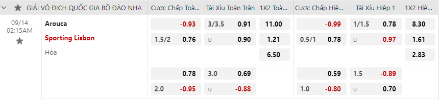 Soi kèo hiệp 1 Arouca vs Sporting Lisbon