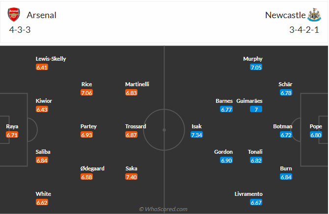 Newcastle đã leo lên vị trí thứ 3 trên bảng xếp hạng sau khi thắng Chelsea ở vòng đấu trước, chuỗi trận đá tốt thời gian qua đã giúp họ leo lên vị trí thứ 3 trên bảng xếp hạng và rất nhiều cơ hội giành vé dự Champions League mùa tới. Đội bóng của HLV Eddie Howe muốn duy trì chuỗi trận thăng hoa của mình bằng một chiến thắng nữa trước Arsenal ở vòng 37. Tuy nhiên khi đội bóng chủ nhà không còn phải chia sức cho Champions Legue thì họ sẽ chơi tập trung hơn và Newcastle phải hài lòng với 1 điểm ra về.