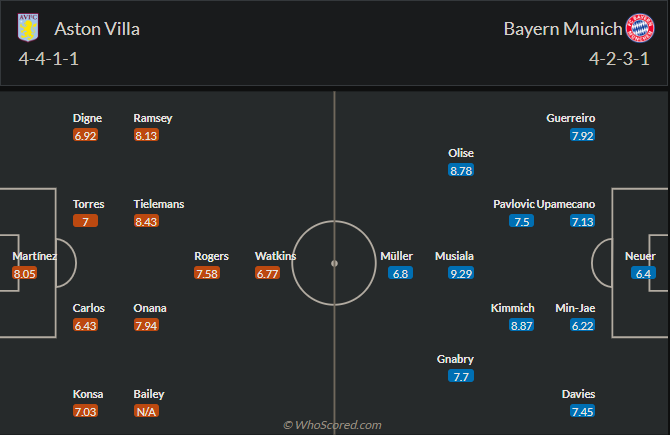 Aston Villa đã chơi rất xuất sắc mùa giải trước để có vé dự Champions League, mùa bóng này đội bóng của HLV Unai Emery tiếp tục chơi tốt tại Premier League và họ vẫn đứng trong top đầu. Tại Champions League đội bóng của thành phố Birmingham đã xuất sắc có chiến thắng ở lượt trận đầu tiên nhưng để đi sâu vào giải thì họ cần làm nhiều hơn thế, Aston Villa cần có một kết quả tốt trước các đối thủ mạnh như Bayern ở lượt trận thứ 2 này. Tuy nhiên trước đối thủ vượt trội thì lợi thế sân nhà khả năng là chưa đủ để Aston Villa có điểm.
