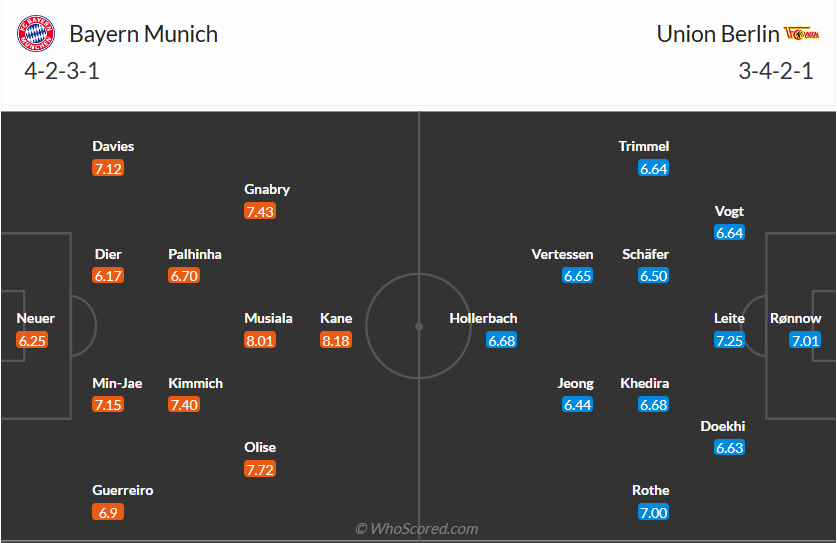 Union Berlin không phải đội bóng mạnh của Bundesliga, việc họ chỉ đứng thứ 15 mùa trước cho thấy điều đó. Chính vì vậy vị trí thứ tư ở thời điểm hiện tại mùa này là sự bất ngờ rất lớn mà thầy trò HLV Bo Svensson tạo ra, với 3 chiến thắng trong 5 vòng gần nhất thì các cầu thủ Union Berlin muốn tiếp tục có một kết quả tốt. Tuy nhiên ở vòng đấu thứ 9 này họ phải làm khách trên sân của một Bayern đang chơi rất ấn tượng nên xem ra cơ hội có điểm là không cao, nhiều khả năng Union Berlin sẽ không thể có điểm ở trận đấu này.