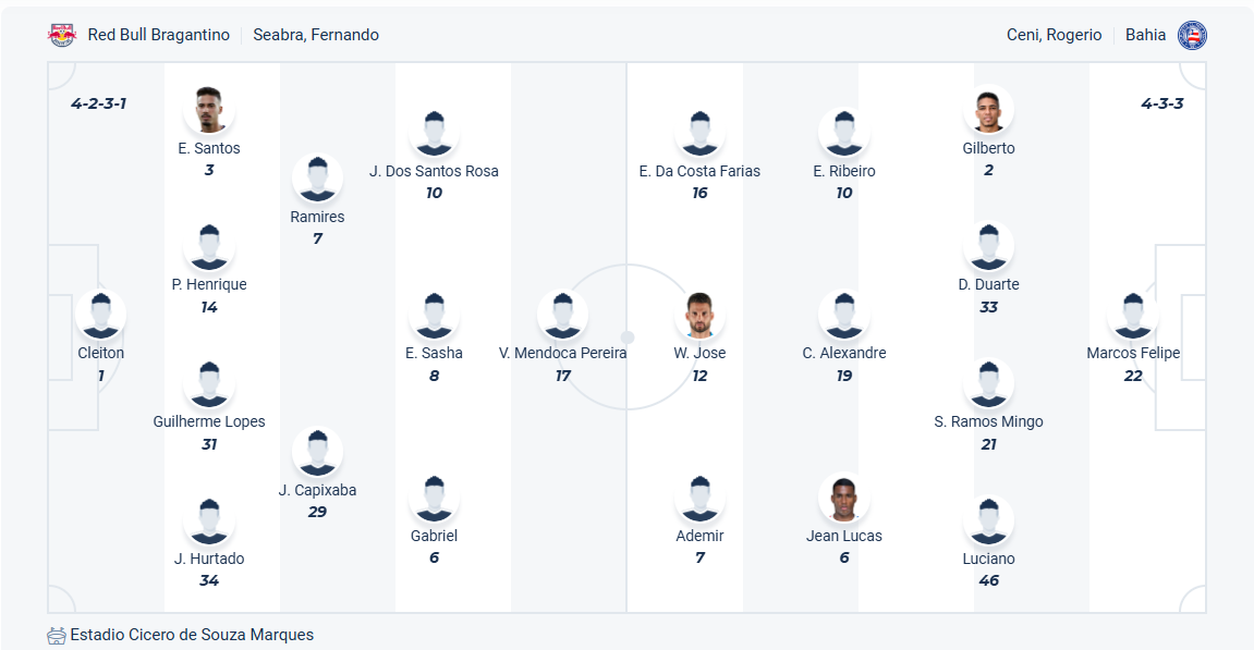 Trong khi Bragantino tiến bộ vượt bậc thì Bahia vẫn chơi tương tự như mùa trước của họ, vị trí thứ 7 hiện tại cho thấy điều đó. Đây không phải vị trí tệ với thầy trò HLV Rogério Ceni nhưng họ vẫn muốn chơi tốt trong các trận đấu sắp tới để có vị trí cao hơn. Chính vì vậy sau khi có 3 điểm ở vòng trước thì Bahia muốn có thêm 3 điểm nữa ở vòng đấu này. Tuy nhiên chuyến làm khách trên sân đội bóng đang chơi tốt như Bragantino được dự đoán rất khó khăn, nhiều khả năng Bahia sẽ không thể có điểm ra về.
