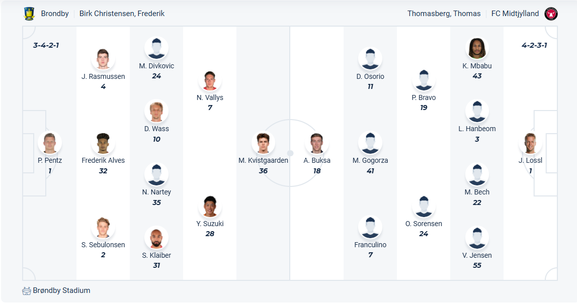 Brondby đang đứng thứ 2, kém đội đầu bảng 1 điểm. Việc không thắng 3 vòng gần nhất khiến đội bóng của HLV Frederik Birk mất vị trí đầu bảng, nếu tiếp tục chơi không tốt như thời gian qua thì họ sẽ còn tụt xuống sâu hơn nữa. Trong bối cảnh giải chỉ còn 2 vòng nữa thì các cầu thủ Brondby cần thắng cả 2 trận còn lại thì mới có hy vọng giành chức vô địch. Vậy nên khi tiếp đón Midtjylland trên sân nhà thì 3 điểm là điều duy nhất mà các cầu thủ Brondby hướng đến. Nếu tận dụng tốt các cơ hội có được thì đội chủ nhà hoàn toàn có thể đạt được mục đích.