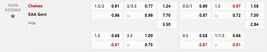 Tỷ lệ kèo Chelsea vs KAA Gent