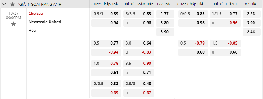 Tỷ lệ kèo Chelsea vs Newcastle United