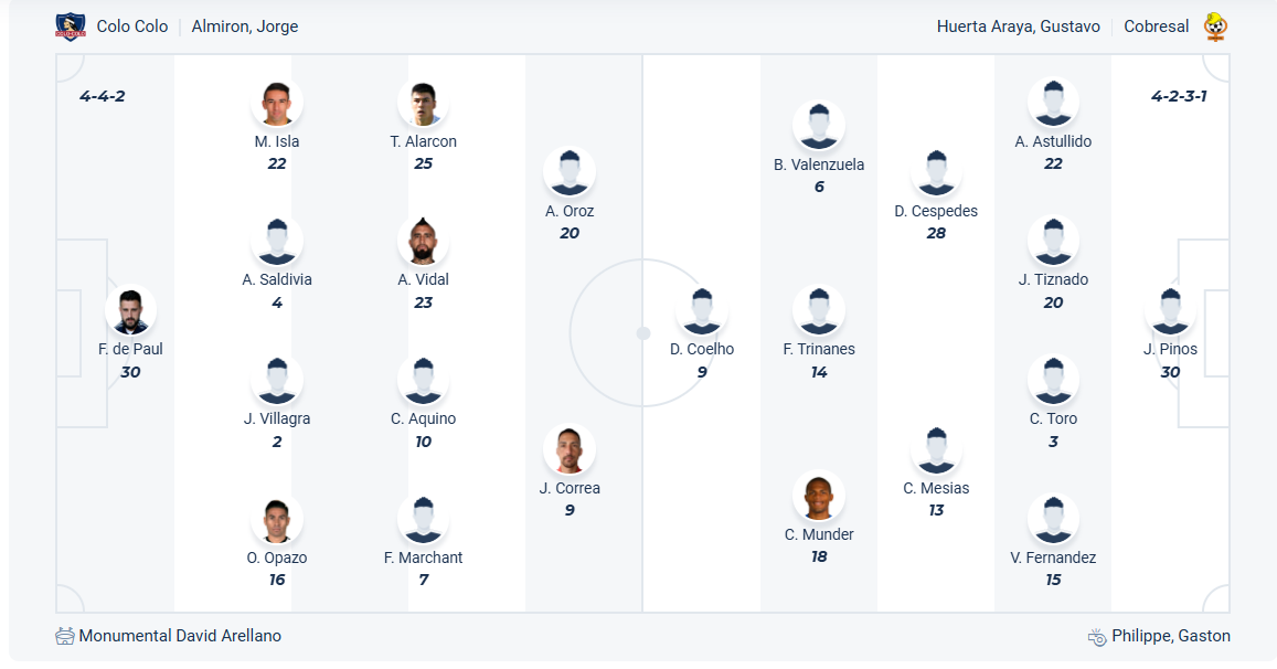 Colo Colo sẽ tiếp Cobresal trên sân nhà với mục tiêu giành chiến thắng để bám đuổi các đội xếp trên. Đây không phải điều khó thực hiện bởi đội khách được đánh giá yếu hơn họ khá nhiều.