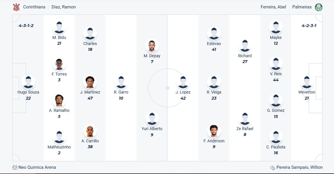 Palmeiras đang là đương kim vô địch của Brazil, mùa bóng năm nay đội bóng của HLV Abel Ferreira muốn bảo vệ ngôi vương nhưng những gì họ thể hiện chưa thể khiến người hâm mộ hài lòng. Họ để hoà 2/3 vòng gần nhất và tụt xuống vị trí thứ 2 trên bảng xếp hạng. Các cầu thủ Palmeiras muốn ngay lập tức trở lại mạch chiến thắng để đua vô địch nên khi đến làm khách trên sân của Corinthians thì 3 điểm là điều duy nhất họ hướng đến. Trước đối thủ đang đứng trong nhóm cuối bảng thì nhiều khả năng Palmeiras sẽ có được 3 điểm trận này.