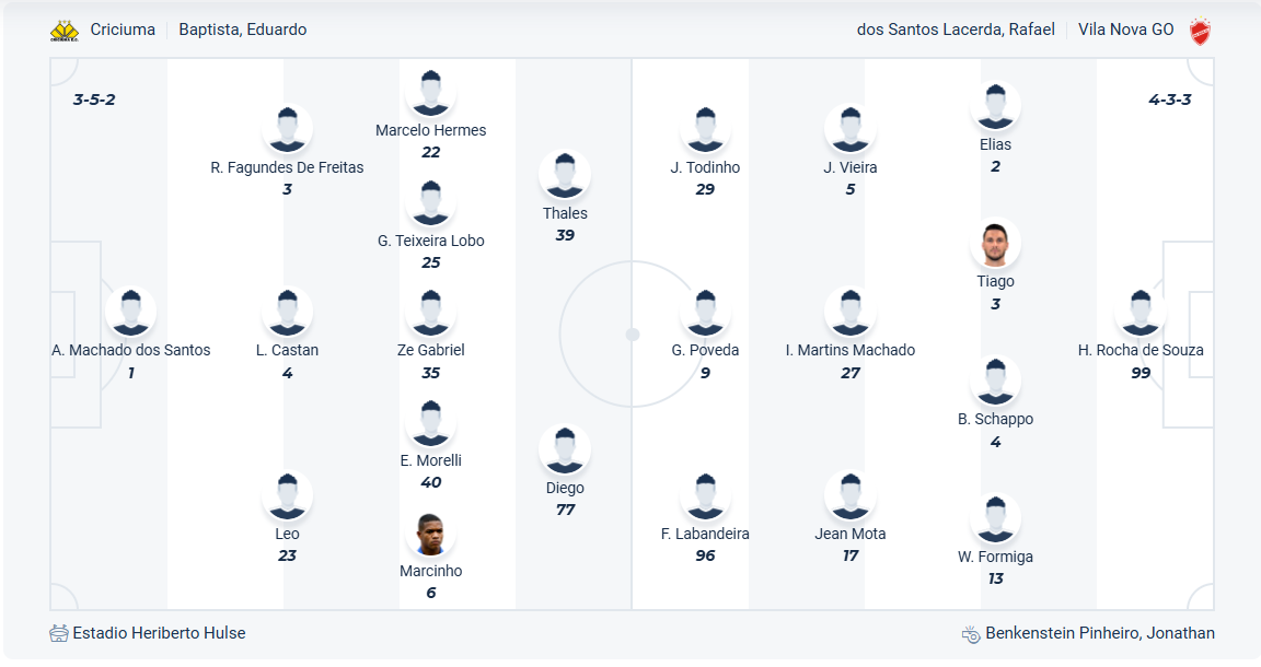 Vila Nova là đội bóng trung bình khá của Serie B, họ đứng thứ 9 mùa giải trước. So với vị trí đó thì mùa bóng này đội bóng của HLV Rafael Lacerda không cho thấy sự tiến bộ khi vẫn đang đứng thứ 9, họ chơi không tốt thời gian gần đây khi thua 3/4 trận gần nhất. Nếu không chơi tốt hơn thì Vila Nova sẽ trôi dần xuống cuối bảng xếp hạng nên họ muốn có một kết quả tích cực ở vòng 11 này. Tuy nhiên đến làm khách trên sân của đối thủ như Criciuma không phải trận đấu dễ dàng và khả năng Vila Nova sẽ tiếp tục phải nhận thất bại.