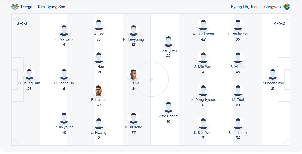 Gangwon mùa trước chơi cực tốt khi đứng thứ 2 tại K-League, so với thứ hạng đó thì rõ ràng viêc đứng thứ 7 ở thời điểm hiện tại là rất đáng thất vọng. Đội bóng của HLV Chung Kyung-ho đã chơi tốt hơn thời gian gần đây với chiến thắng liên tiếp và họ muốn tiếp tục làm điều tương tự ở FA Cup để hy vọng đoạt danh hiệu vào cuối mùa giải. Việc chỉ phải gặp đội bóng đang đứng cuối bảng Daegu là trận đấu không khó khăn, nhiều khả năng Gangwon sẽ chơi đủ tốt để có được chiến thắng.
