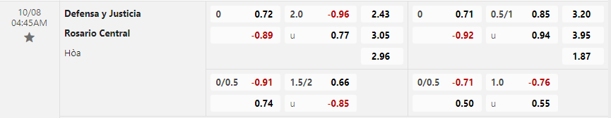 Soi kèo châu Á Defensa y Justicia vs Rosario Central