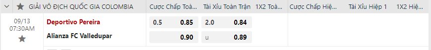 Tỷ lệ kèo Deportivo Pereira vs Alianza Futbol Club