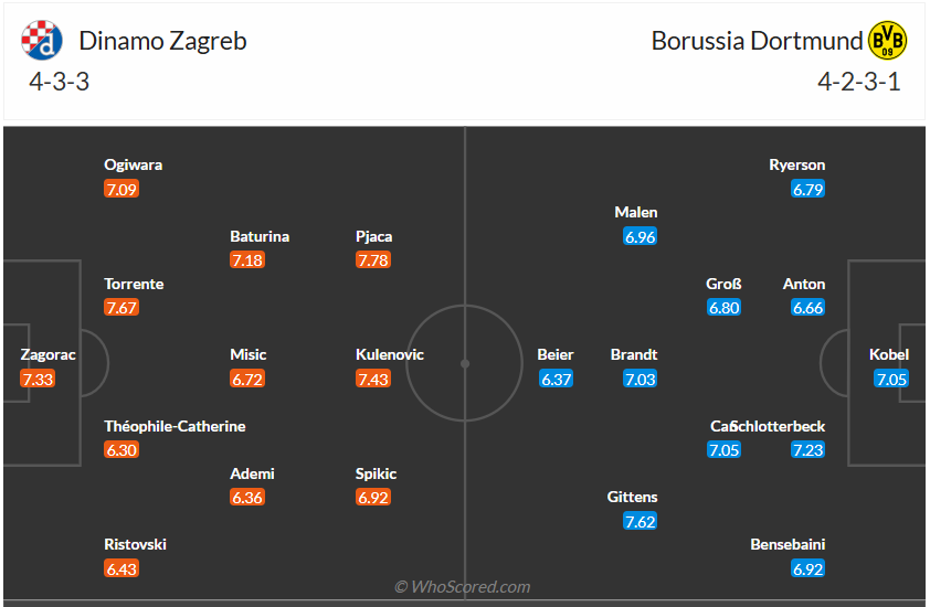 Dortmund mùa này vẫn chơi bất ổn như những mùa bóng trước đây của họ, thắng và thua xen kẽ nhau trong các trận đã đấu của mình. Đội bóng của tân HLV Nuri Sahin chơi không đến nỗi nào sau 4 lượt trận tại Champions League khi đang có 9 điểm cùng vị trí 7 trên bảng xếp hạng. Mục tiệu của Dortmund rõ ràng là nằm trong top 8 nên họ cần tiếp tục giành chiến thắng để thực hiện điều đó. Chính vì vậy khi đến làm khách trên sân của đối thủ không mạnh như Dinamo Zagreb thì 3 điểm là điều mà đội bóng nước Đức hướng đến, đây không phải điều khó thực hiện và nhiều khả năng các cầu thủ khách sẽ có 3 điểm ra về.