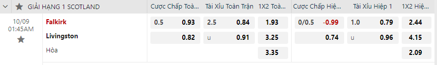 Nhận định soi kèo Falkirk vs Livingston vào 01h45 ngày 9/10/2024