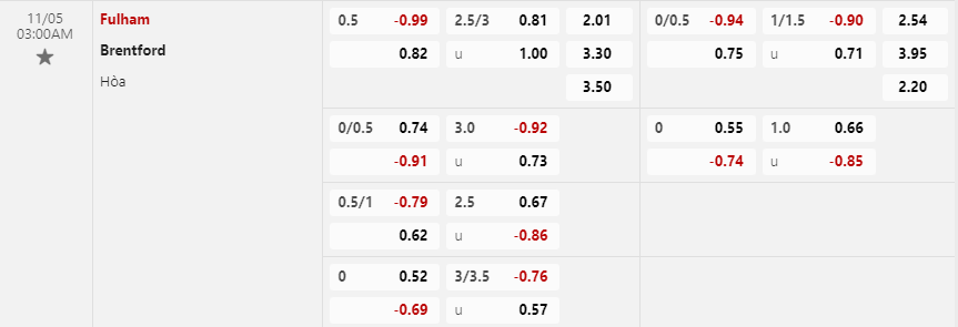 Soi kèo châu Á Fulham vs Brentford: 0.99*0.5*0.82