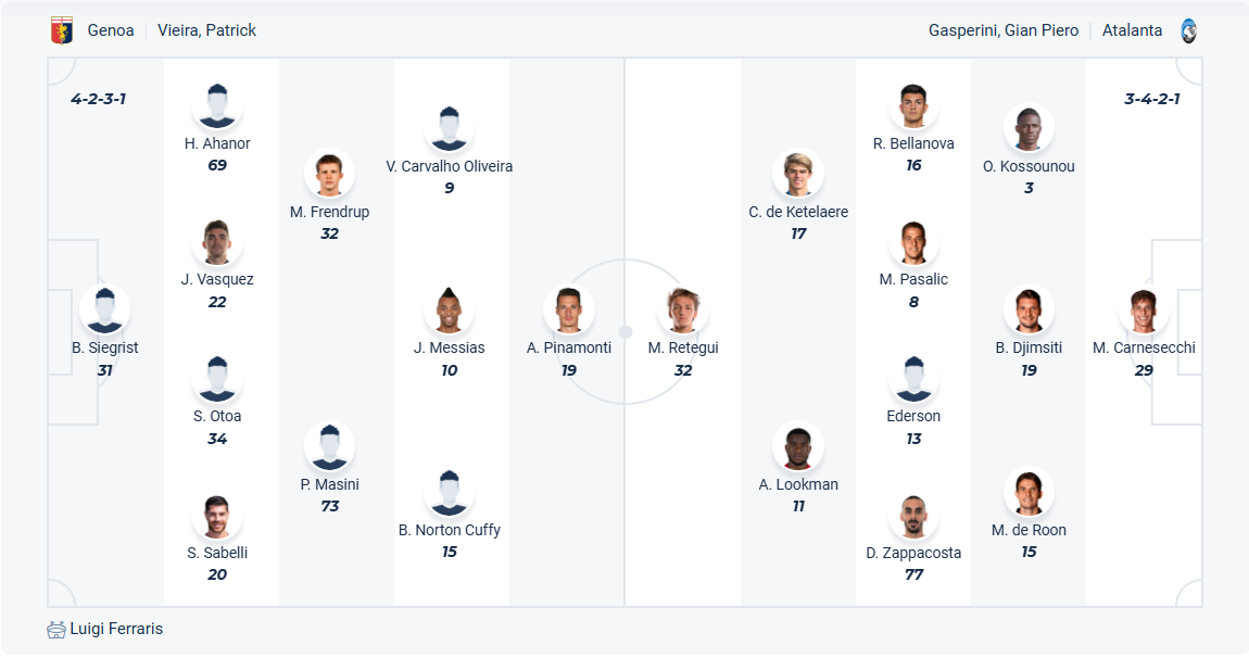 Atalanta đã chắc chắn có vị trí thứ 3 trên bảng xếp hạng, họ đang kém đội đứng thứ hai 6 điểm và hơn đội đứng thứ tư 7 điểm. Chính vì vậy 2 trận còn lại cũng không còn nhiều ý nghĩa với đội bóng này. Tuy nhiên đội bóng của HLV Gian Piero Gasperini vẫn đang chơi rất ổn và họ muốn duy trì chuỗi trận tốt đó cho đến hết mùa. Vậy nên Atalanta đến làm khách trên sân của Genoa với mục tiêu giành chiến thắng, trước đối thủ yếu hơn nhiều và đang chơi rất tệ thì nhiều khả năng Atalanta sẽ có được điều mình cần.