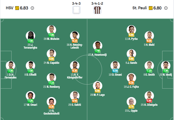 Hamburg đã trở lại Bundesliga mùa này sau khoảng thời gian rớt hạng, rõ ràng thực lực của họ không còn được như xưa nên mục tiêu trong mùa giải sắp tới của thầy trò HLV Merlin Polzin sẽ chỉ là trụ hạng. Họ khởi đầu mùa giải không đến nỗi nào với một trận hòa trước Borussia Monchegladbach và muốn có chiến thắng ở vòng đấu thứ 2 này khi đối thủ của họ là St Pauli, đội bóng không mạnh. Tuy nhiên rất có thể Hamburg cũng sẽ chỉ có được kết quả hòa bởi đối thủ của họ có thực lực tương đương.