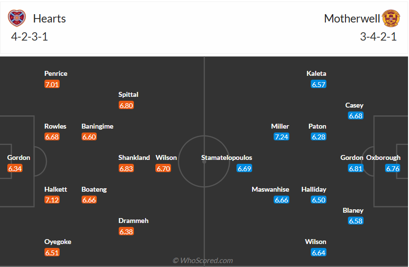 Hearts chơi khá tốt mùa giải trước và cán đích ở vị trí thứ 3, tuy nhiên mùa bóng năm nay mọi thứ diễn biết rất tệ với đội bóng này. Họ hiện đang đứng thứ 11 và mục tiêu trong phần còn lại của mùa giải sẽ chỉ là trụ hạng thành công. Phong độ của thầy trò HLV Neil Critchley thời gian qua cũng không hề tốt khi chỉ thắng 2/6 vòng đấu gần nhất, họ muốn cải thiện phong độ đó nhưng vòng thứ 21 này đối thủ của các cầu thủ Hearts lại là Motherwell, đội bóng đang được đánh giá cao hơn nên xem ra cơ hội giành chiến thắng không cao. Nhiều khả năng trận đấu sẽ kết thúc với tỉ số hòa.