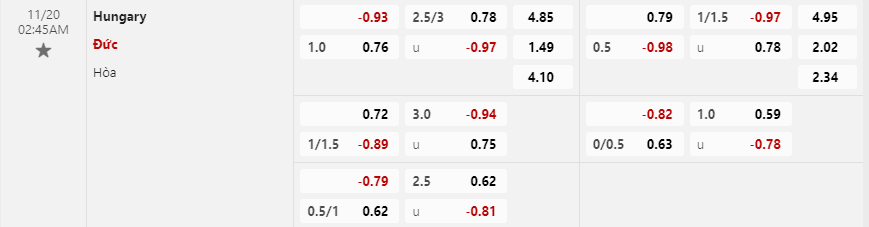 Soi kèo hiệp 1 Hungary vs Đức: 0.79*-0.5*0.98