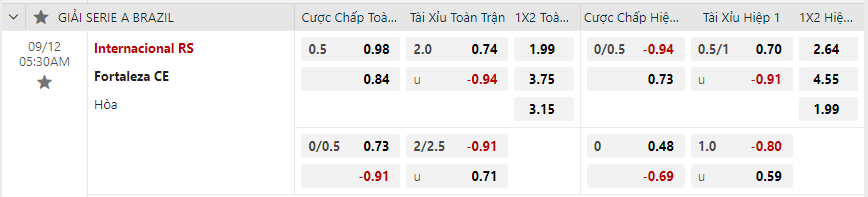 Soi kèo hiệp 1 Internacional vs Fortaleza