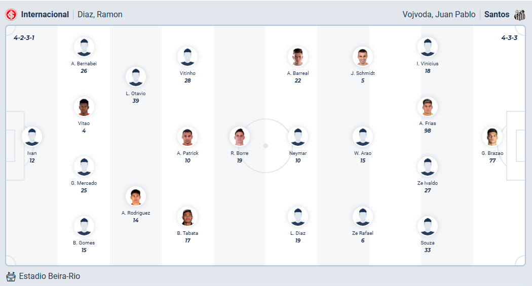 Internacional đứng thứ 5 mùa giải trước, vị trí rất ổn nhưng người hâm mộ còn muốn nhiều hơn thế. Vậy nên việc đang đứng thứ 15 trong thời điểm mùa giải năm nay sắp khép lại là một thất bại to lớn của thầy trò HLV Ramón Díaz, ở thời điểm này thậm chí họ vẫn còn có nguy cơ xuống hạng nên phải chơi tốt trong các trận cuối cùng của mùa giải. Các cầu thủ Internacional cần một chiến thắng ở vòng đấu này sau khi có 3 điểm ở vòng trước để cắt mạch trận đáng thất vọng. Santos không phải đối thủ quá khó chơi và nhiều khả năng lợi thế sân nhà sẽ giúp họ đạt được mục đích.