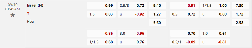 Trong 4 trận gần nhất, Israel đã để thủng lưới tới 10 bàn thể hiện rõ sự kém cỏi ở hàng phòng ngự. Còn đội tuyển Ý đã ghi tới 3 bàn trước một hàng phòng ngự kiên cố của đội tuyển Pháp. Do đó cửa Tài sẽ là lựa chọn hợp lý dành cho người chơi ở kèo đấu này. Mời các bạn đón xem tường thuật trực tiếp bóng đá hôm nay trên kênh Xoilac TV.