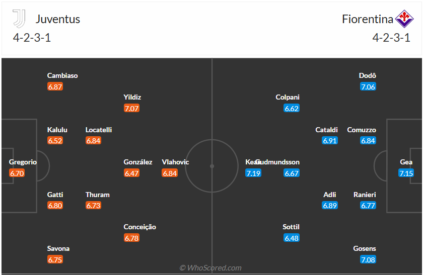 Juventus sau chuỗi 4 trận hòa liên tiếp tại Serie A thì đã có chiến thắng ở vòng đấu trước, vị trí hiện tại của đội bóng này là thứ 6 và rõ ràng nó chưa thể khiến họ hài lòng. Thầy trò HLV Thiago Motta cần tiếp tục giành chiến thắng để cạnh tranh với các đội xếp trên nên khi đón tiếp Fiorentina ở vòng đấu thứ 18 này thì 3 điểm là điều duy nhất các cầu thủ Juventus hướng đến. Ở thời điểm đội khách đang có dấu hiệu sa sút thì nhiều khả năng Juventus sẽ có được chiến thắng trận đấu này.