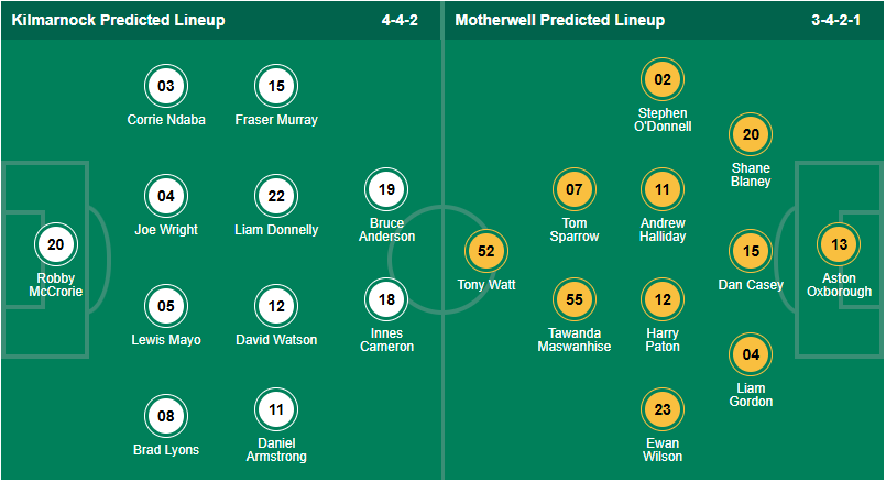 Kilmarnock là đội bóng khá của Scotland, mùa này họ đang đứng thứ 10 trên bảng xếp hạng, thành tích rất tệ so với vị trí thứ 4 của họ ở mùa giải trước. Đội bóng của HLV Derek McInnes đang chịu rất nhiều áp lực phải chơi tốt hơn trong các trận đấu sắp tới, sau khi để thua ở vòng đấu trước thì các cầu thủ Kilmarnock cần giành chiến thắng ở vòng đấu thứ 23 này. Tuy nhiên trước đối thủ khó chơi như Motherwell thì giành 3 điểm là điều không dễ, nhiều khả năng đội bóng chủ nhà sẽ chỉ có được trận hòa.