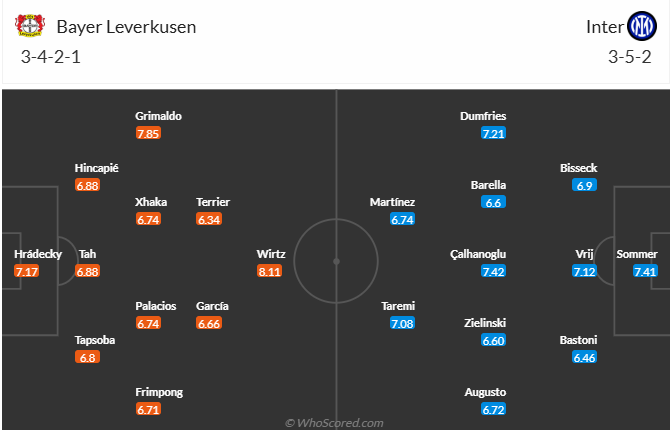 Inter cũng đang chơi rất tốt mùa này, họ là đội duy nhất chưa bị thủng lưới tại Champions League và đang đứng thứ 2 trên bảng xếp hạng. Đội bóng của HLV Simone Inzaghi cũng đang chơi rất ổn tại Serie A và tiếp tục là ứng cử viên vô địch. Đây là điều giúp các cầu thủ Inter rất tự tin và họ muốn giành thêm một kết quả tốt nữa để mở toang cách cửa đi tiếp mà không phải đá play off. Tuy nhiên chuyến làm khách trên sân của Leverkusen được dự đoán rất khó khăn, nhiều khả năng trước đối thủ rất mạnh và cũng đang có phong độ cao thì Inter sẽ phải nhận trận thua đầu tiên.