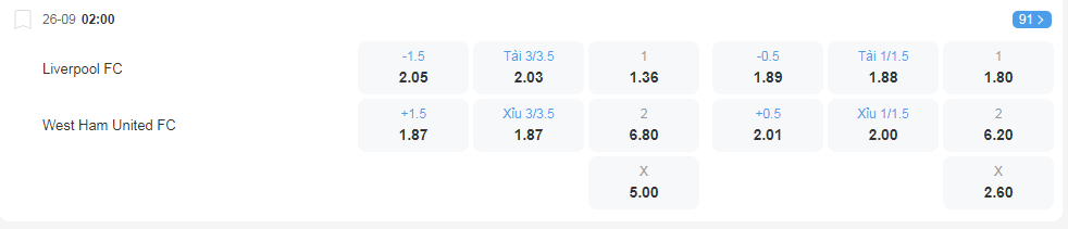 Soi kèo tài xỉu Liverpool vs West Ham United