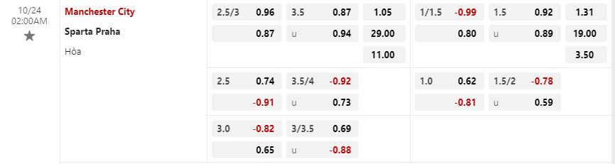 Tỷ lệ kèo Manchester City vs Sparta Praha