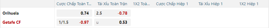 Soi kèo châu Á Orihuela vs Getafe: 0.74*-1.25*0.97