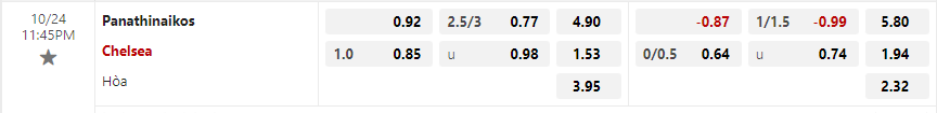 Tỷ lệ kèo Panathinaikos vs Chelsea