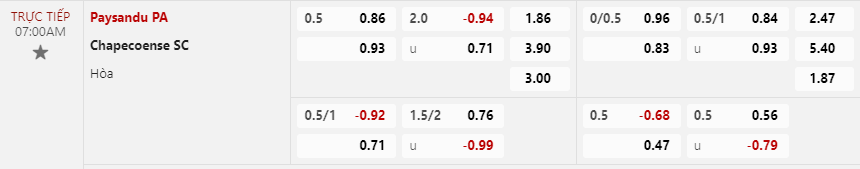 Soi kèo hiệp 1 Paysandu vs Chapecoense