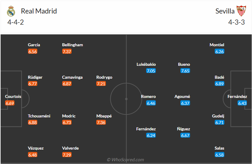 Real Madrid không thể chiếm ngôi đầu bảng ở vòng đấu trước khi chỉ có được trận hòa, rất may là Barcelona thậm chí còn để thua nên mọi thứ vẫn còn nằm trong tầm tay của thầy trò HLV Carlo Ancetlotti. Điều mà họ cần làm vào lúc này là ngay lập tức trở lại với mạch thắng để có thể hy vọng chiếm ngôi đầu bảng của đối thủ. Đối thủ của họ ở vòng đấu sắp tới là Sevilla, đội chơi không tốt trong những mùa giải gần đây khi chỉ đứng giữa bảng xếp hạng nên cơ hội giành chiến thắng của Real Madrid là rất cao. Nhiều khả năng đội bóng chủ nhà sẽ có được 3 điểm trận này.