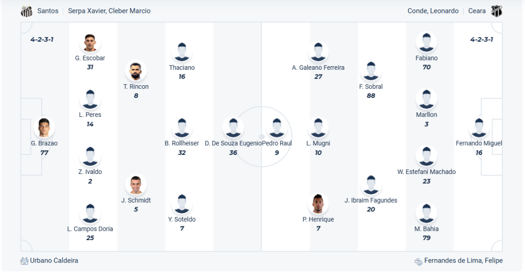 Santos từng phải xuống hạng và mới thăng hạng trở lại hạng đấu cao nhất của Brazil mùa giải này. Trước khi muốn tìm lại vị thế hàng đầu của mình thì các cầu thủ của HLV Cleber Xavier cần trụ hạng trước. Họ khởi đầu mùa giải không tốt chút nào khi đang đứng thứ 19 sau 7 vòng đấu, Santos thua cả 3 trận gần nhất nên rất cần một kết quả tốt ở vòng đấu thứ 8 này. 3 điểm là điều họ hướng đến khi tiếp đón Ceara, trước đối thủ không quá mạnh thì nhiều khả năng Santos sẽ có được điều mình cần nếu tận dụng tốt cơ hội có được.