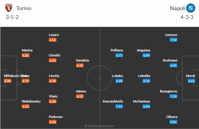 Đội hình dự kiến Torino vs Napoli