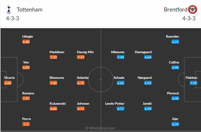 Tottenham đặt mục tiêu lọt vào top 4 mùa giải này, tuy nhiên họ khởi đầu mùa giải không tốt một chút nào. Đội bóng của HLV Andre Postecoglu mới có 4 điểm và vừa thua 2 vòng đấu liên tiếp, họ không thể tiếp tục mất điểm nữa và cần phải giành chiến thắng ở vòng đấu thứ 5 này. Brentford không phải đối thủ dễ chịu nhưng dù sao chất lượng đội hình vẫn kém Tottenham nên nếu đội chủ nhà chơi đúng với đẳng cấp của mình thì 3 điểm là điều không khó thực hiện. Sau 2 trận thua liên tiếp nhiều khả năng Tottenham sẽ làm tốt ở trận đấu này và có chiến thắng.