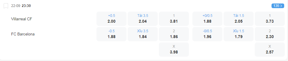 Soi kèo tài xỉu Villarreal vs Barcelona