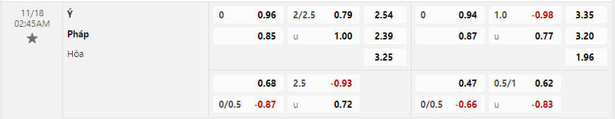 Soi kèo tài xỉu Ý vs Pháp: 0.93*2.5*0.72