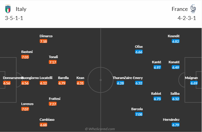 Đội hình dự kiến Ý vs Pháp